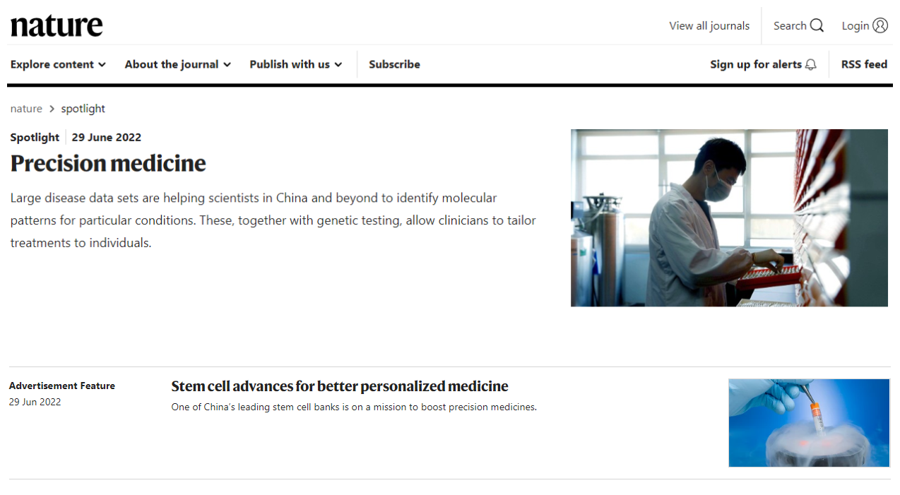 北科生物在《自然》增刊“自然聚焦-中國精準(zhǔn)醫(yī)療”中發(fā)表主題文...