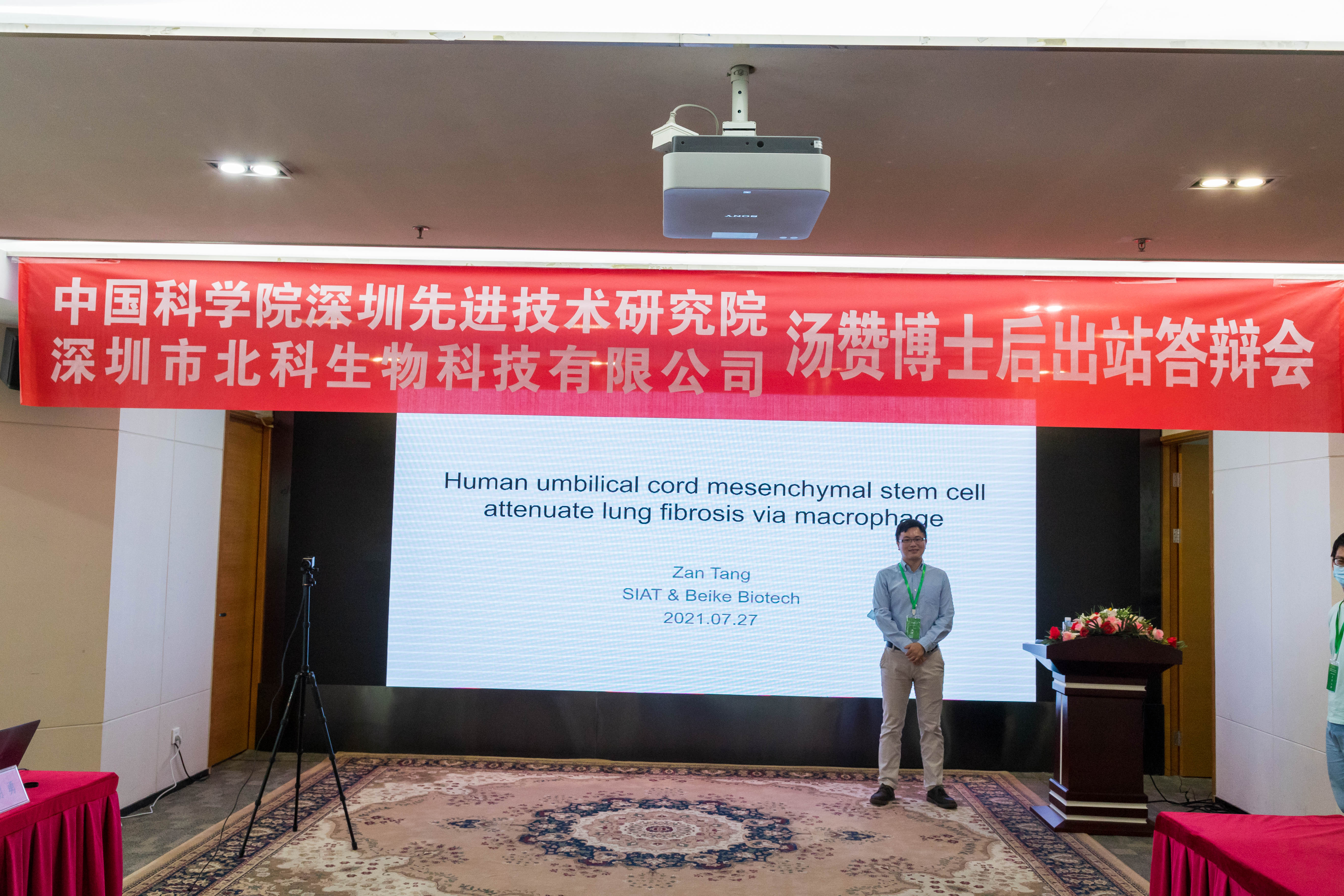 7月27日,由中國科學院深圳先進技術(shù)研究院與深圳市北科生物科技有限公司聯(lián)合培養(yǎng)的博士后湯贊博士出站答辯會在北科大廈舉行。