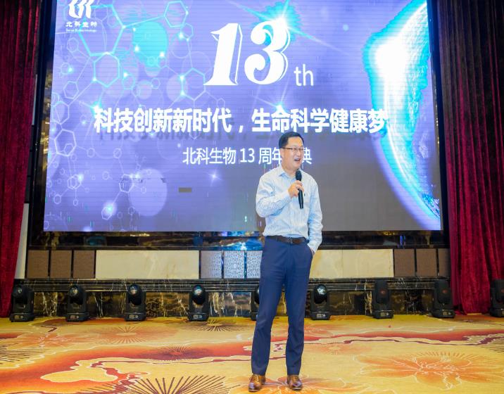 圖為北科生物董事長胡祥博士致辭賀北科生物13周年慶