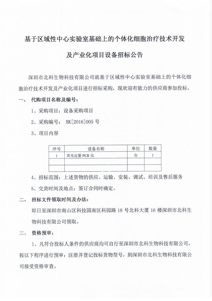 基于區(qū)域性中心實驗室基礎上的個體化細胞治療技術開發(fā)及產(chǎn)業(yè)化項目設備招標公告