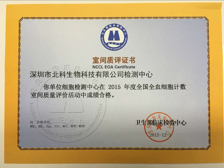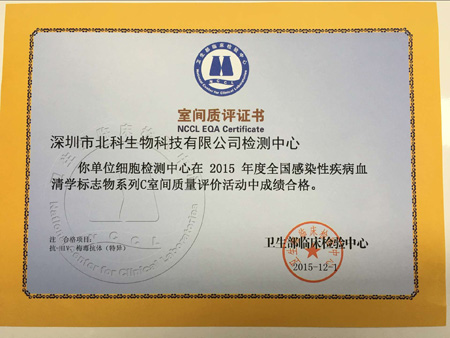 深圳細(xì)胞質(zhì)量檢測(cè)平臺(tái)獲得衛(wèi)生部臨床檢驗(yàn)中心室間質(zhì)評(píng)證書