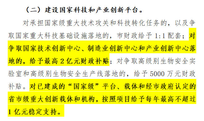 對承擔國家級重大技術(shù)攻關(guān)和科技轉(zhuǎn)化任務,以及爭取國家重大科技基礎設施落地的給予財政補貼。