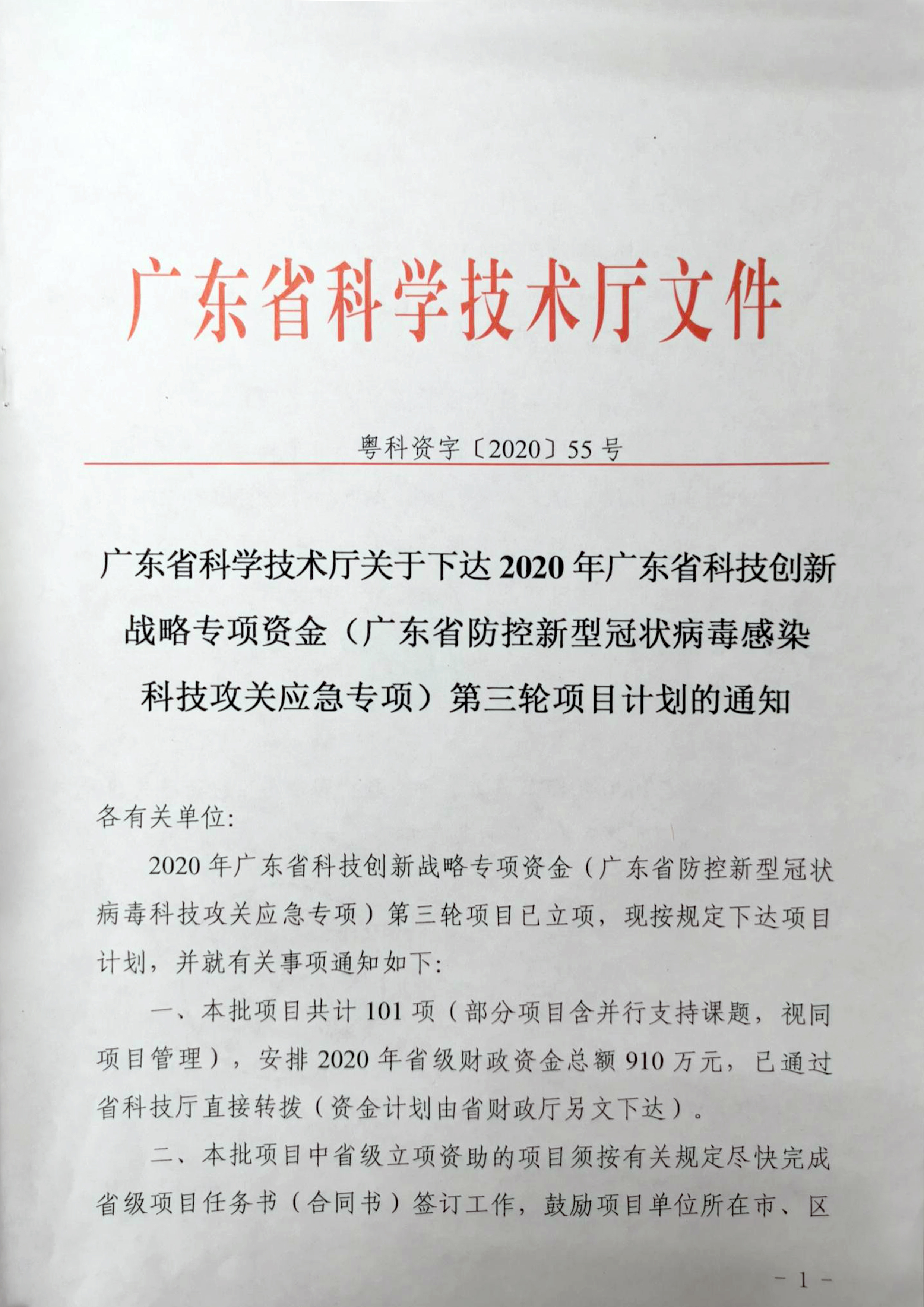 重磅!北科生物獲廣東省防控新冠病毒感染科技攻關(guān)應(yīng)急專項立項